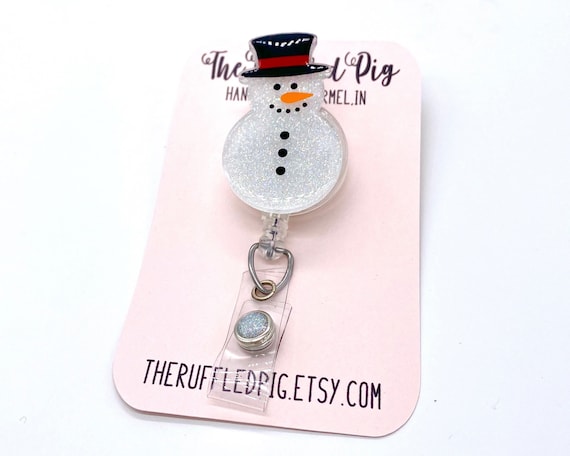 Snowman Retractable Badge Reel Christmas Id Holder Winter Etsy